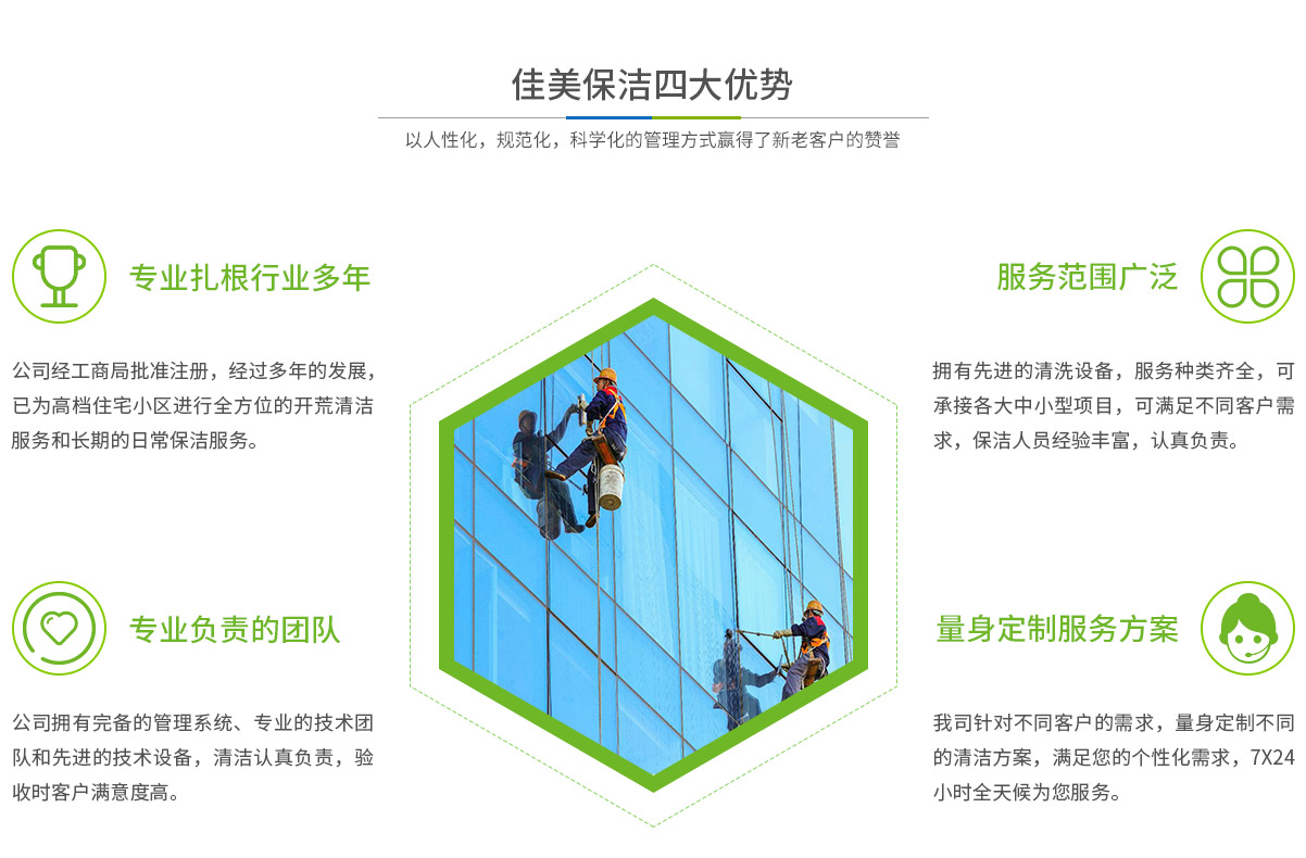 - 馬鞍山市佳美保潔服務有限公司是一家經工商部門批準,具有法人資格專業(yè)清洗,馬鞍山保潔服務的公司,自創(chuàng)辦以來,一直致力于企業(yè),家庭,賓館,學校,別墅,酒店,商廈,公共設施等場所提供科學的日常保潔和清潔保護的服務公司,有著豐富的管理服務和保潔經驗...